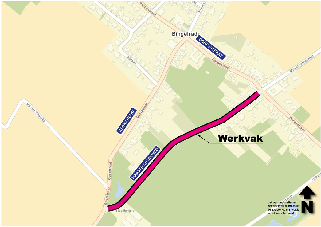 De werkzaamheden vinden plaats op de Maastrichterweg in Bingelrade. Een overzicht van het werkvak is te zien op de afbeelding op de achterzijde van deze brief.