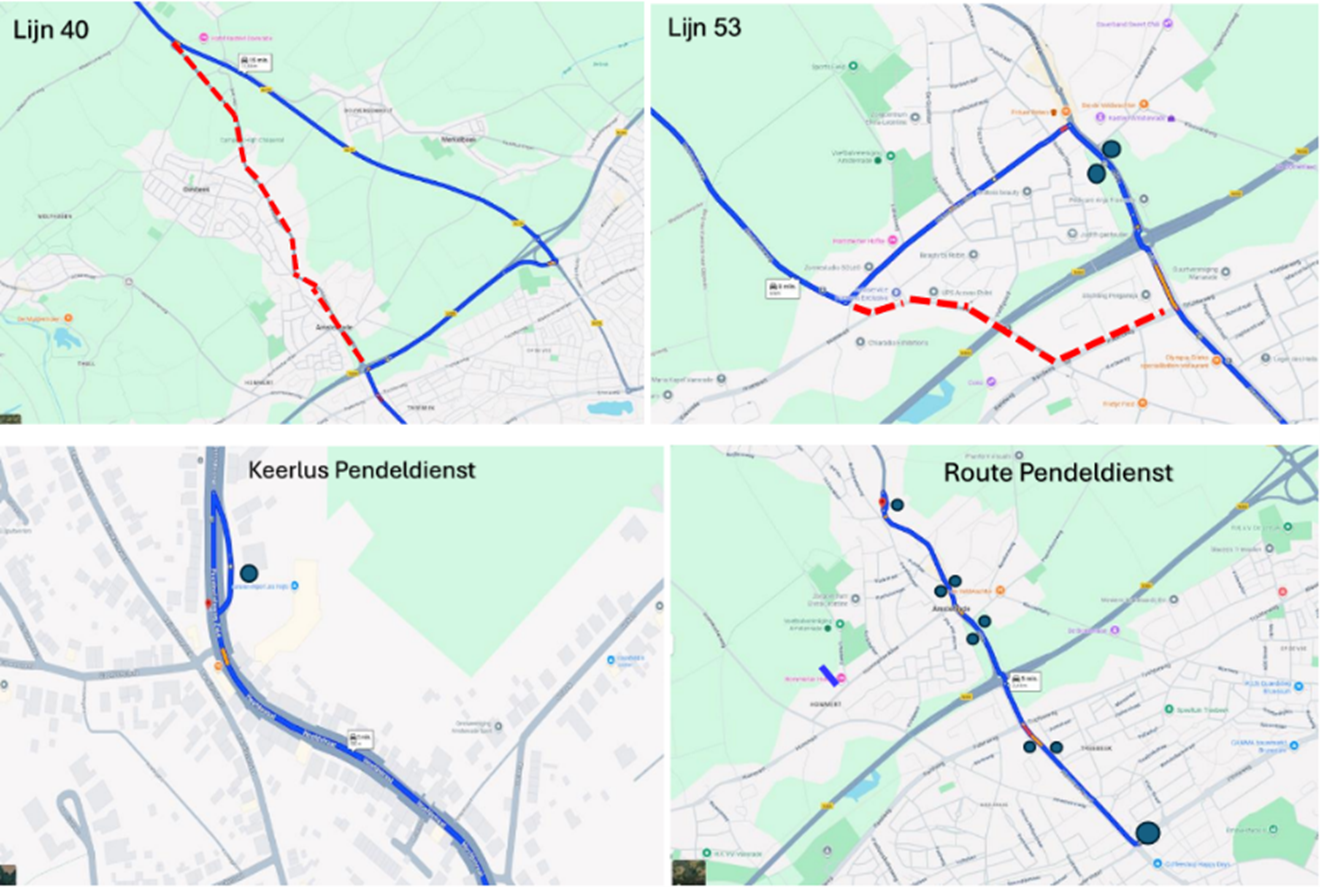 Er rijdt een extra pendelbus (lijn 140) tussen Amstenrade en Hoensbroek. De reguliere lijn 40 rijdt een aangepaste route. Kijk voor actuele reistijden en -planning op de website van Arriva.