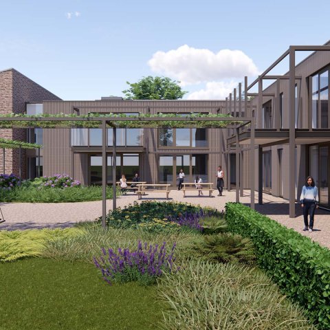 Het Biesonder Thuis wordt een warm, duurzaam en toekomstgericht thuis voor 32 bewoners. Het woonconcept is een innovatieve vorm van zorg, waarbij ouders en zorginstelling Koraal nauw samenwerken. Door gezamenlijk zorg te verlenen, ontstaat een sterkere relatie tussen zorgaanbieders, bewoners en ouders. Deze manier van samenwerken helpt bovendien om zorg toegankelijk en betaalbaar te houden voor de toekomst.