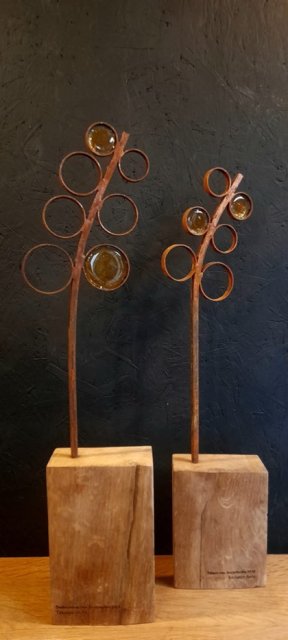 Tijdens het ondernemersgala zijn bijzondere trofeeën uitgereikt: kleine uitvoeringen van Korenaren, het winnende kunstwerk van de Wisselsokkel 2024. Deze miniaturen zijn gemaakt door de drie kunstenaars uit de gemeente Beekdaelen: John Mevis (Atelier Nosh, Schinnen), Timo Derhaagh (Weldz4U, Doenrade) en Imàn Roelofsen (De Kleine Vos, Thull). Hun gezamenlijke werk symboliseert verbinding, groei en de kracht van samenwerking, waarden die perfect aansluiten bij het ondernemersgala.