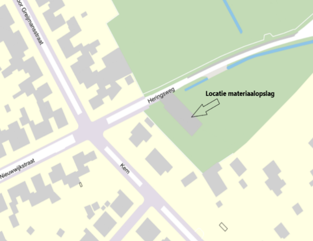 Tijdens de werkzaamheden is een materiaalopslag en bouwkeet nodig. Dit zijn de locaties: